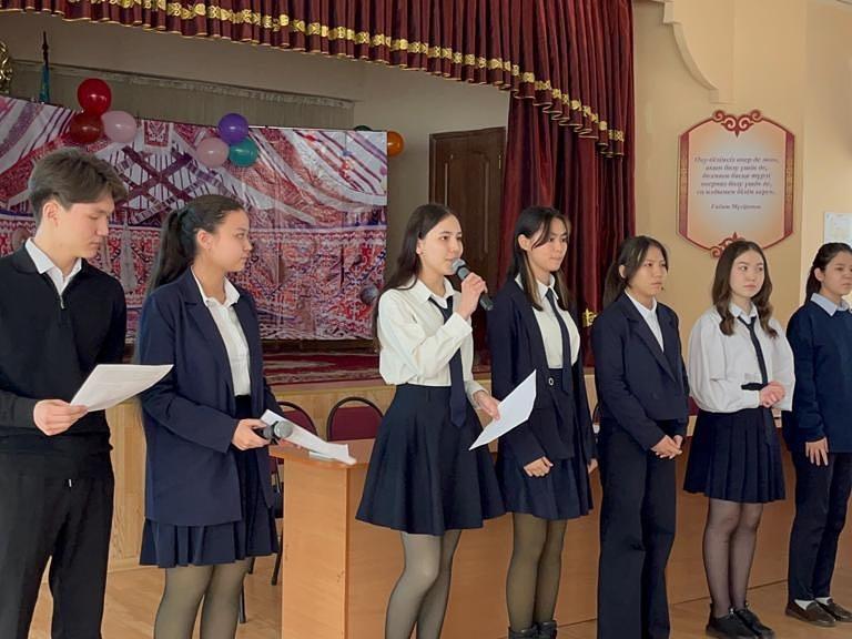 Спикер10«А» сынып оқушысы Құрмаш Бақтияр «Қазақ тілі ұлтаралық қатынас тілі болуы үшін не істеу керек?» тақырыбында ой қозғады. Әр адам мемлекеттік тілдің, қазақ тілінің мәртебесін көтеру үшін не істеу керектігіне тоқталып, мектепте өткізіліп жатқан шараларман әлемдік деңгейде өтіліп жатқан «TEDx» алаңындағы спикерлердің сөздерінен дәйектер келтіре отырып, тың пікірлер айтты. Әбдіғалиева Айым мен Олжабай Айдана қазақ тілі ұлтаралық қатынас тілі болуы үшін әркім өзінен бастау керек деп өз ойларын ортаға салып, таза қазақ тілінде сөйлемеген оқушыларға сын айтты.