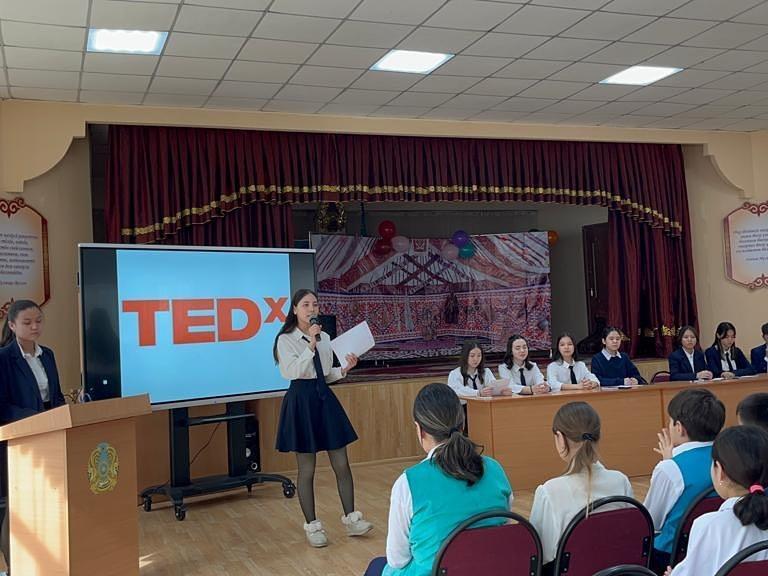 Сабақтың екінші кезеңінде 10- сынып оқушылары «TEDx» алаңында «Таратуға тұрарлық идеялар бізден басталады» ұранымен өз ойларын ортаға салды.
