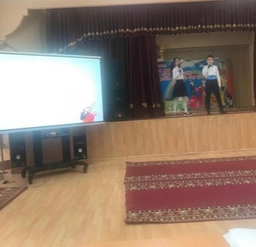 4 «В» сынып Е.Хасанғалиев,О.Иманғалиевтың «Анаға сәлем» әннің өзі орындап шықты.