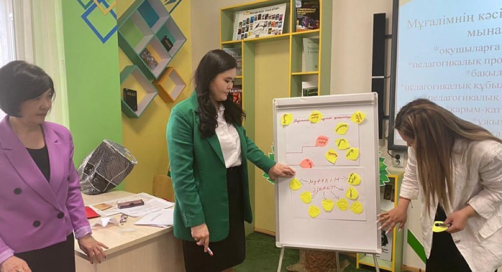 ⚪️ 03.04.-14.04.2023ж. аралығында жоспарланған Ғылыми-жаратылыстану бірлестігі ұстаздарының “Сырға толы сырлы әлем” атты онкүндігінің аясында жоспарға сәйкес 6 сәуір күні химия пәнінің мұғалімі Лукпанова Клара “Сабақта табысқа жетуге жағдай туғызу тәсілдері” тақырыбында жас мамандарға коучинг өткізді.