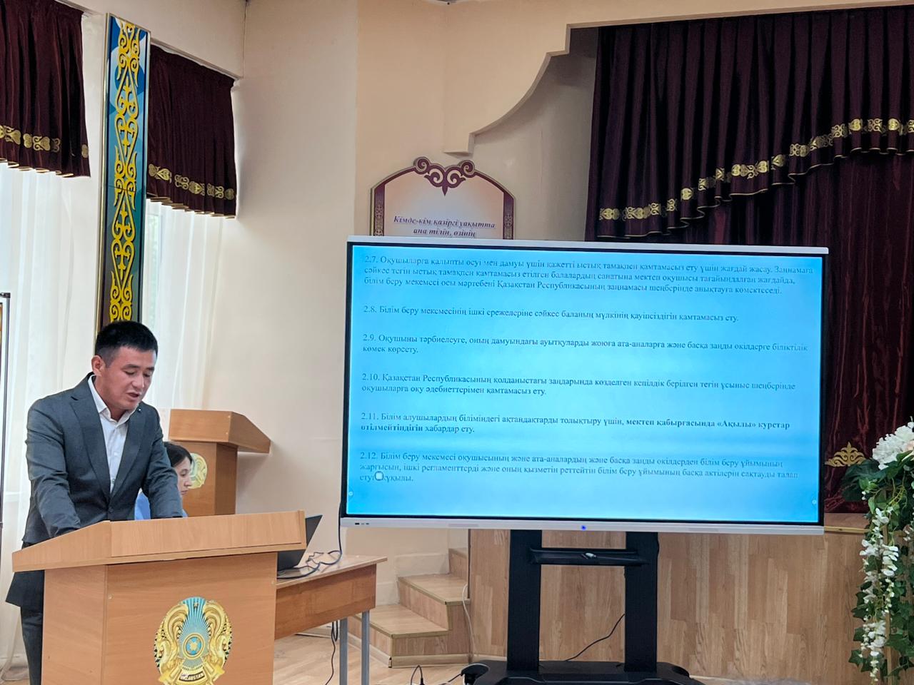 Ата-аналар өздерін толғандырып жүрген сұрақтарына мектеп-гимназия директоры А.Т.Сарбагысов жауап бере отыра, ата-аналарға сәттілік тіледі 🎉💐