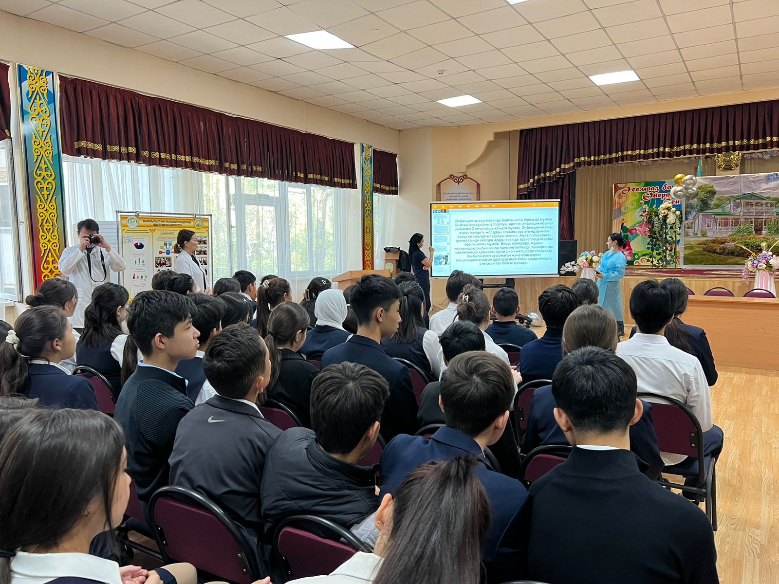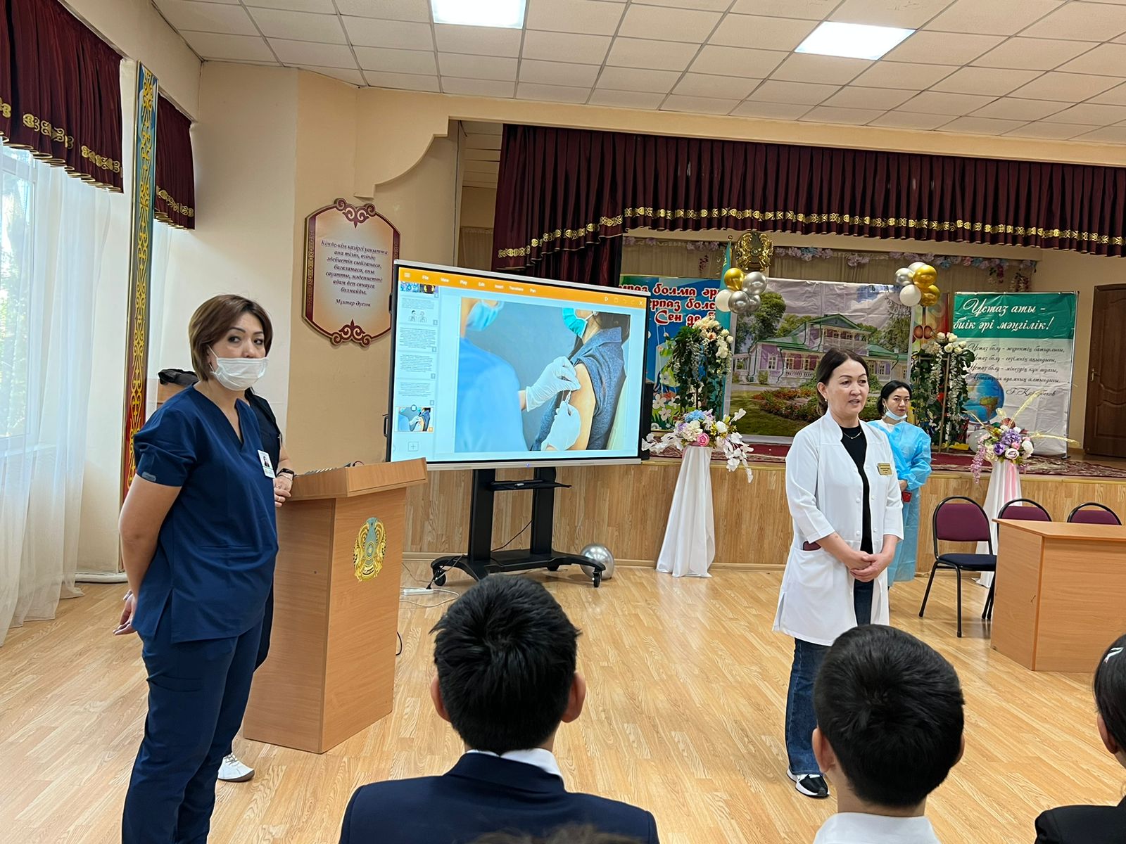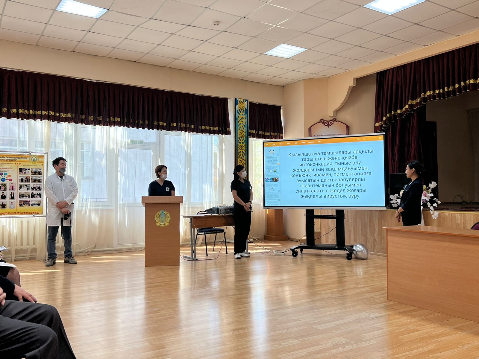 Қызылша – бұл ауа-тамшылы инфекциялар тобына жататын жедел жұқпалы вирустық ауру. Ауру адамнан адамға ауа арқылы, тыныс алу жолдарының тамшыларымен немесе жұқтырған адамдардың мұрының немесе тамағының бөлінісімен тікелей байланыста болатындығы жөнінде мектеп оқушылары мен ұстаздарына түсіндірме жұмыстарын жүргізді. Дәрісті 6-емхана дәрігерлері Илалова Айгерим Абдреймовна, Медеров Нурислам Бауржанович, Бобекбаева Индира Ашимхановна, Жыланбаева Гульнара Каленовна жүргізді. Дәрісте Аурудың алдын алу шаралары және ауырған жағдайда қолданатын шаралар жөнінде сөз қозғалды.