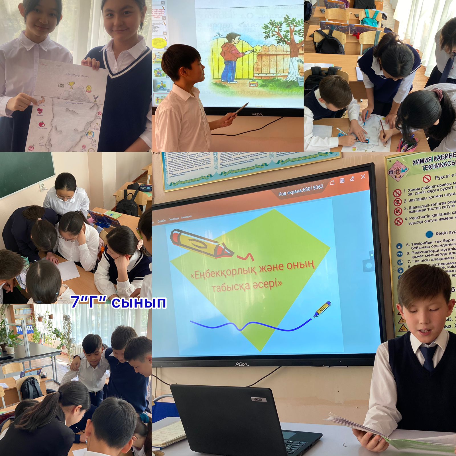 17 октябрь 2023 100 1 2 3 4 5 "Еңбекқорлық және оның табысқа әсері" Адам еңбегін бағалай білуге, еңбек адамдарын сыйлай білуге тәрбиелеу, еңбекке қызығушылықтарын арттыру мақсатында "Еңбекқорлық және оның табысқа әсері" тақырыбында 1-11 сыныптарға сынып сағаттары өткізілді.