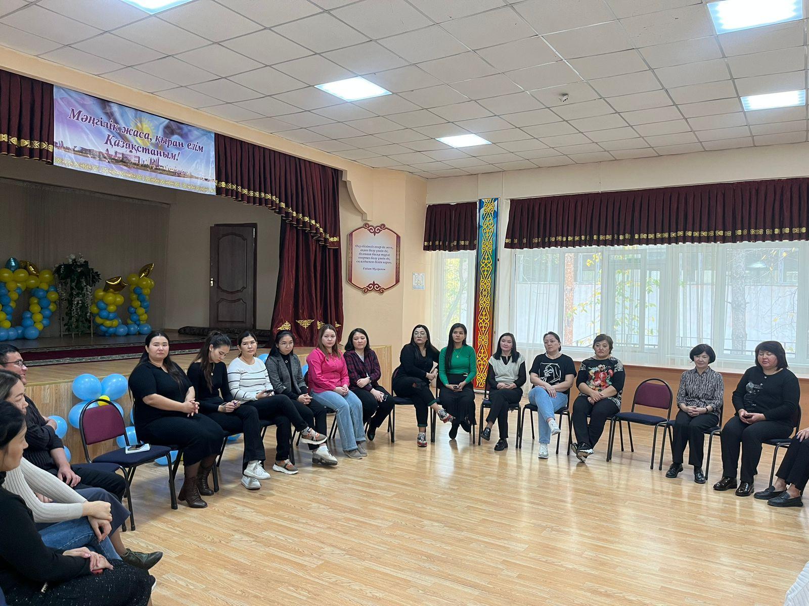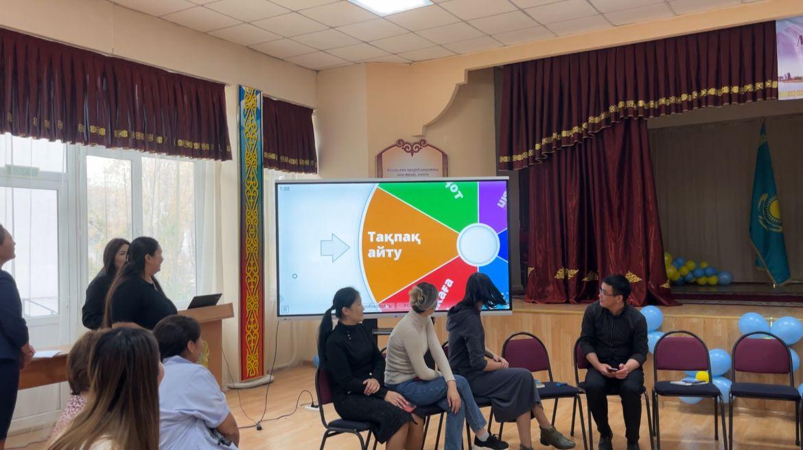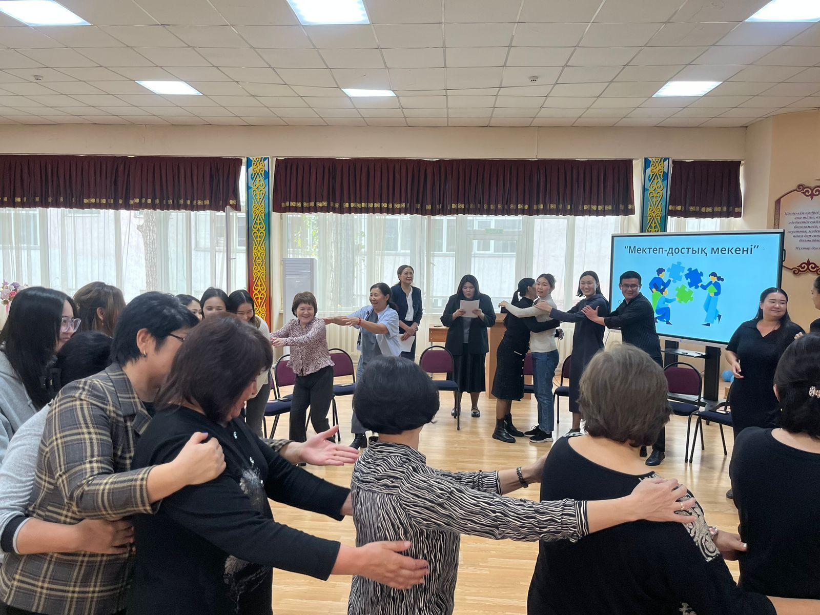 Мектеп ұжымымен «Мектеп-достық мекені» тақырыбында психологиялық тренингі өтті. Мақсаты: педагогикалық ұжымды ынтымақтастыруға, қарым-қатынас дағдысын дамытуға, өз-өзіне деген сенімділігін, жағымды қатынасты арттыруға, көңіл-күйлерін көтеруге бағытталды.