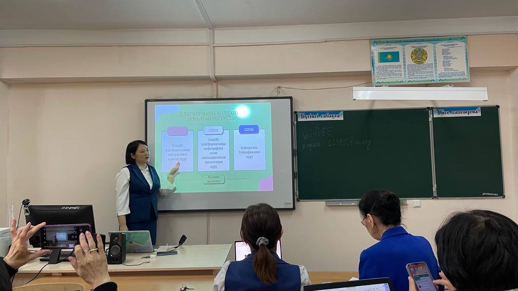 Білім беру саласында жасанды интеллект жүйелерінің мүмкіндіктерін тиімді пайдалану, логикалық ойлау қабілеттерін дамыту мақсатында мектебімізде 20.11.2023ж.-01.12.2023ж. аралығында жоспарланған жаратылытану-математика пәндер бірлестігінің "Ғасырдың ғажап үш тірегі" тақырыбындағы онкүндік аясында Ж.Махамбетованың ұйымдастыруымен мектеп ұстаздарына ""Genially" платформасының мүмкіндіктерін мұғалім контентінде қолдану" тақырыбында шебер сынып өтті.