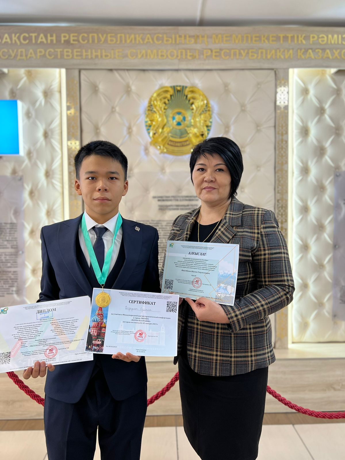 «Халықаралық экология, инженерия және падагогика ғылымдар академиясы» Қоғамдық қоры ұйымжастырған «Қазақстан ғылымының жұлдыздары: білім шыңдарын бағындырамыз» тақырыбында 1-11 сынып оқушылары, ЖОО және колледж студенттері арасында өткен Республикалық ғылыми жобалар байқауында гуманитарлық бағыты, психология секциясы бойынша «Виртуалды ортадағы жасөспірімдердің психологиялық кеңістігінің қауіпсіздігі және оны қорғауының психологиялық мәселелері» тақырыбын 10 «Г» сынып оқушысы Косдаулет Султан І дәрежелі дипломмен марапатталып, Мәскеу қаласына жолдама алды. Жарайсың, Султан