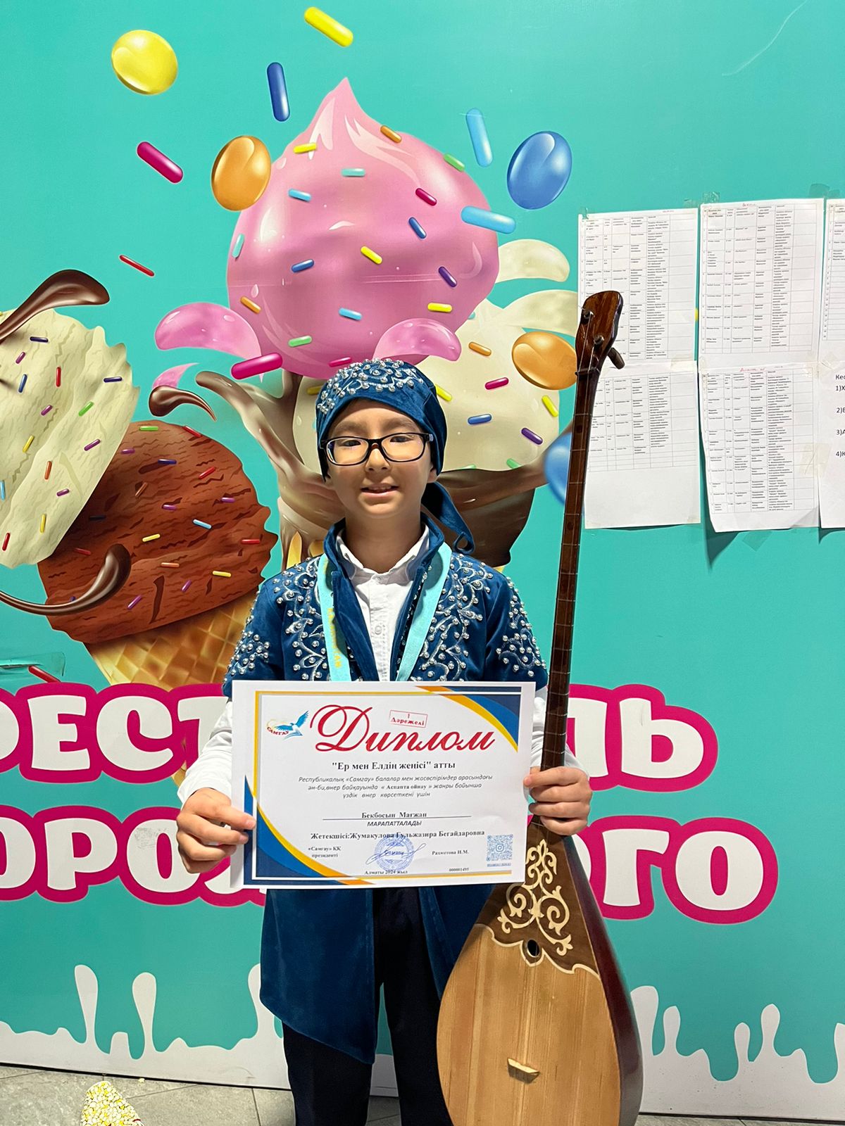 "Ер мен Елдің жеңісі" атты Республикалық "Самгау" балалар мен жасөспірімдер арасындағы ән-би, өнер байқауында "Аспапта ойнау" жанры бойынша үздік өнер көрсеткені үшін 4 "А" сынып оқушысы Бекбосын Мағжан І дәрежелі дипломмен марапатталды.