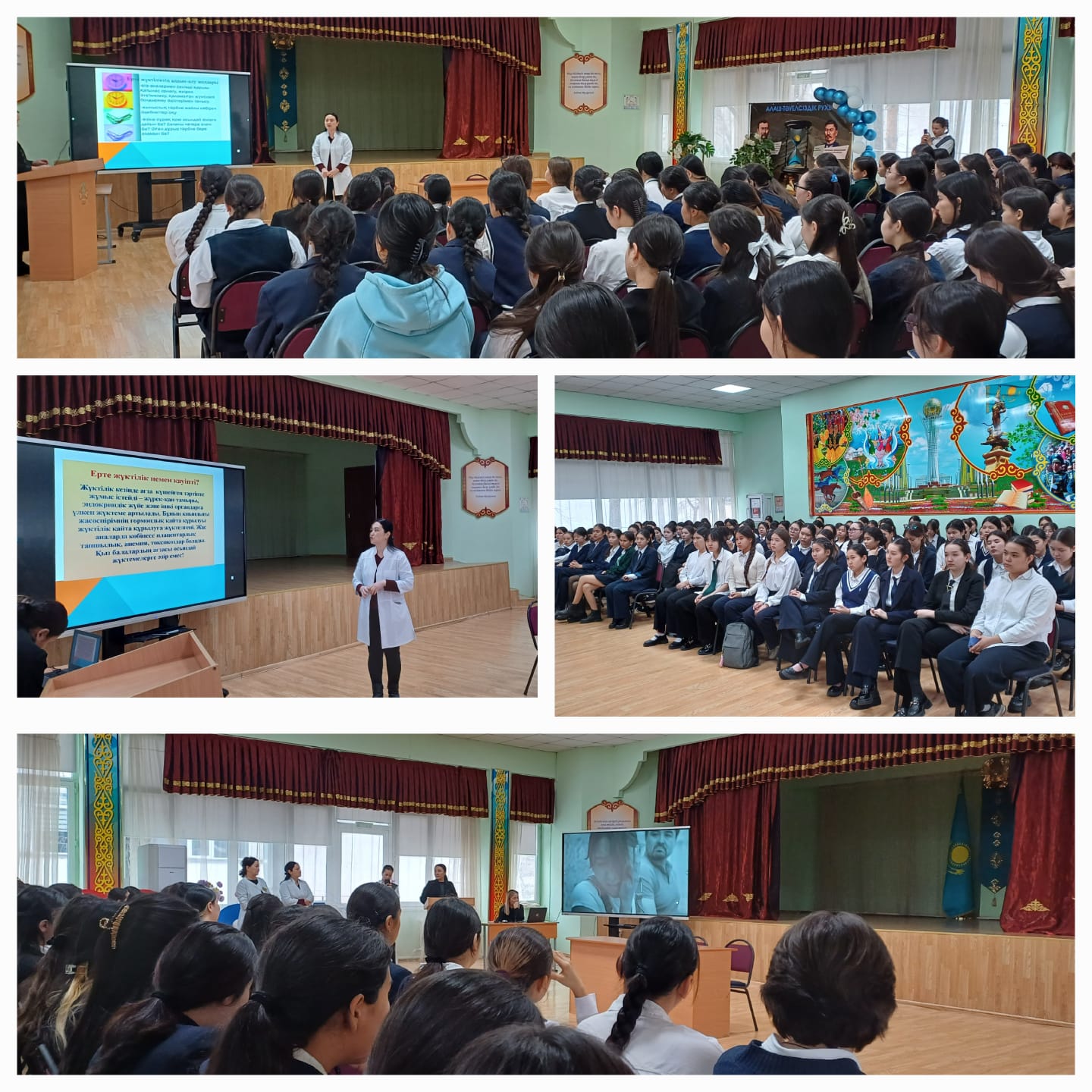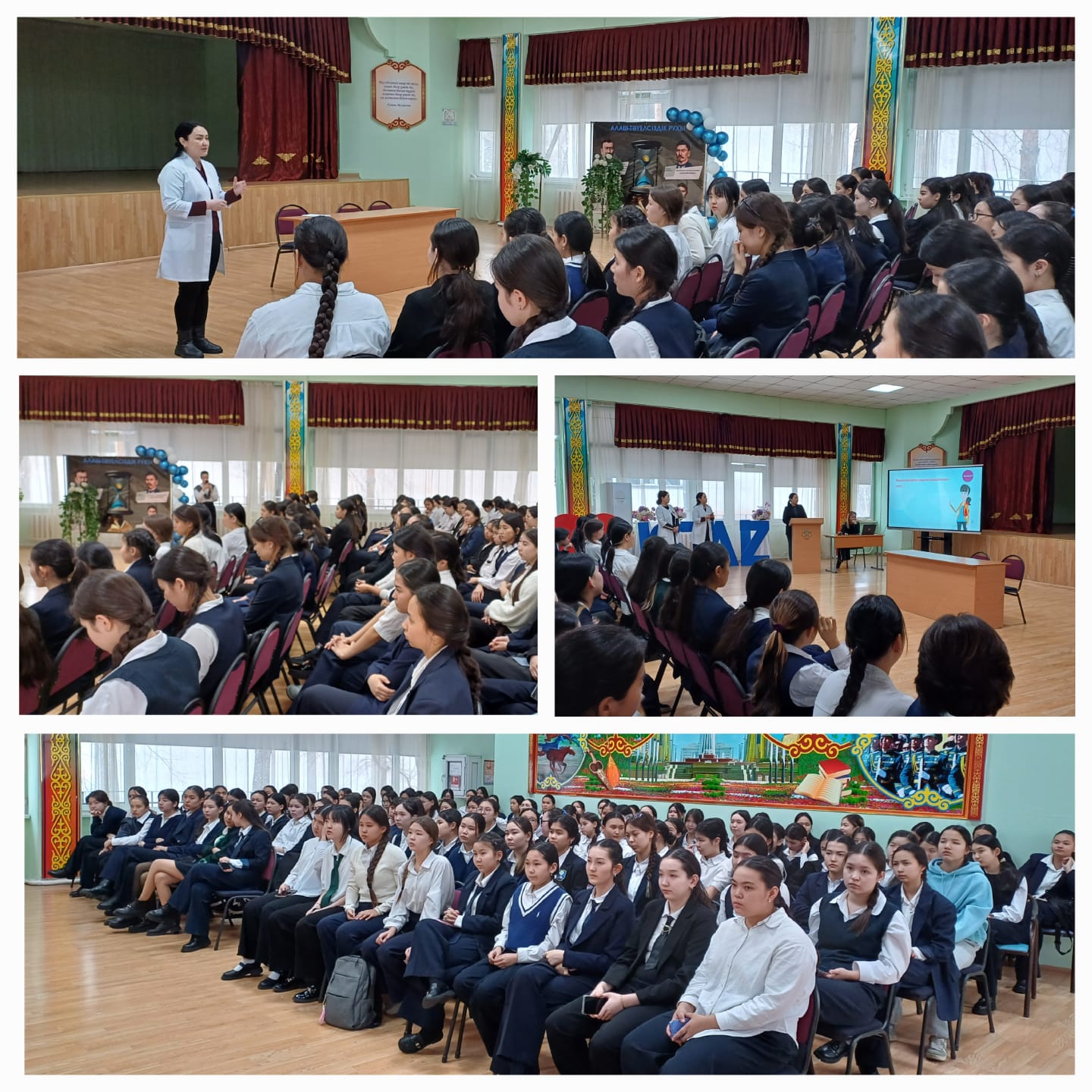 22.01.2025 жылы мектебіміздің мәжіліс залында "Инабат" қыз балалар ұйымының жоспары бойынша "Ерте жыныстық қарым-қатынастың денсаулыққа зияны. Жыныстық қарым-қатынас арқылы жұғатын жұқпалы аурулар" тақырыбында 8-9 сынып қыздарына арнайы орталық мамандарымен жиналыс өтті. Жиналысқа №6 қалалық емхана гинеколог дәрігері Исабаева Инкар Турсунбаевна мен психолог Сейлбекова Айдана Жомартбековна және мектеп медбикесі Байтлеуова Гаухар Касеновна қатысты. Жоғары деңгейде түсіндірме жұмыстарын жүргізді.