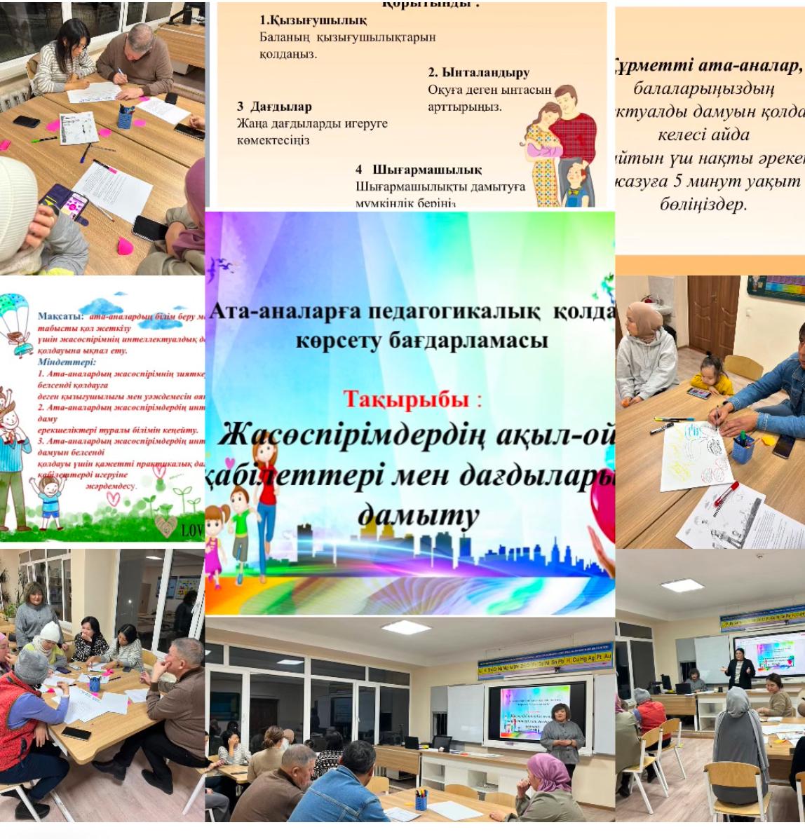 13 декабрь 2024 0 1 2 3 4 5 Ата-аналарға педагогикалық қолдау көрсету бағдарламасы бойынша “Жасөспірімдердің ақыл-ой қабілеттері мен дағдыларын дамыту “ атты 7сынып ата-аналарына сабақ өтілді. Сынып жетекшілер: Тулешова Ш.Н., Алғибай Г.С., Нүсүпбек А. Ғ.
