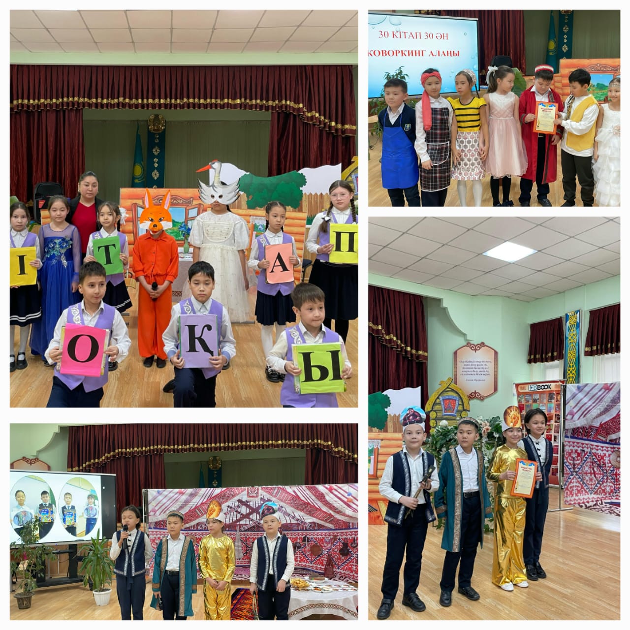 «30 кітап, 30 ән» жобасы аясында оқылған кітаптарды жарнамалау бойынша Коворкинг алаңы 4 сыныптар арасында өткізілді. 4 «А» Алдар көсе «Алтын қасық» ертегісі, 4 «Ә» «Алтын сақа» қазақ халық ертегісі, 4 «Б» «Тырна мен түлкі» ертегісі , 4 «В» «Әке мен бала» Ы.Алтынсарин, 4 «Г» «Алтын асық» ертегісі қойылды.