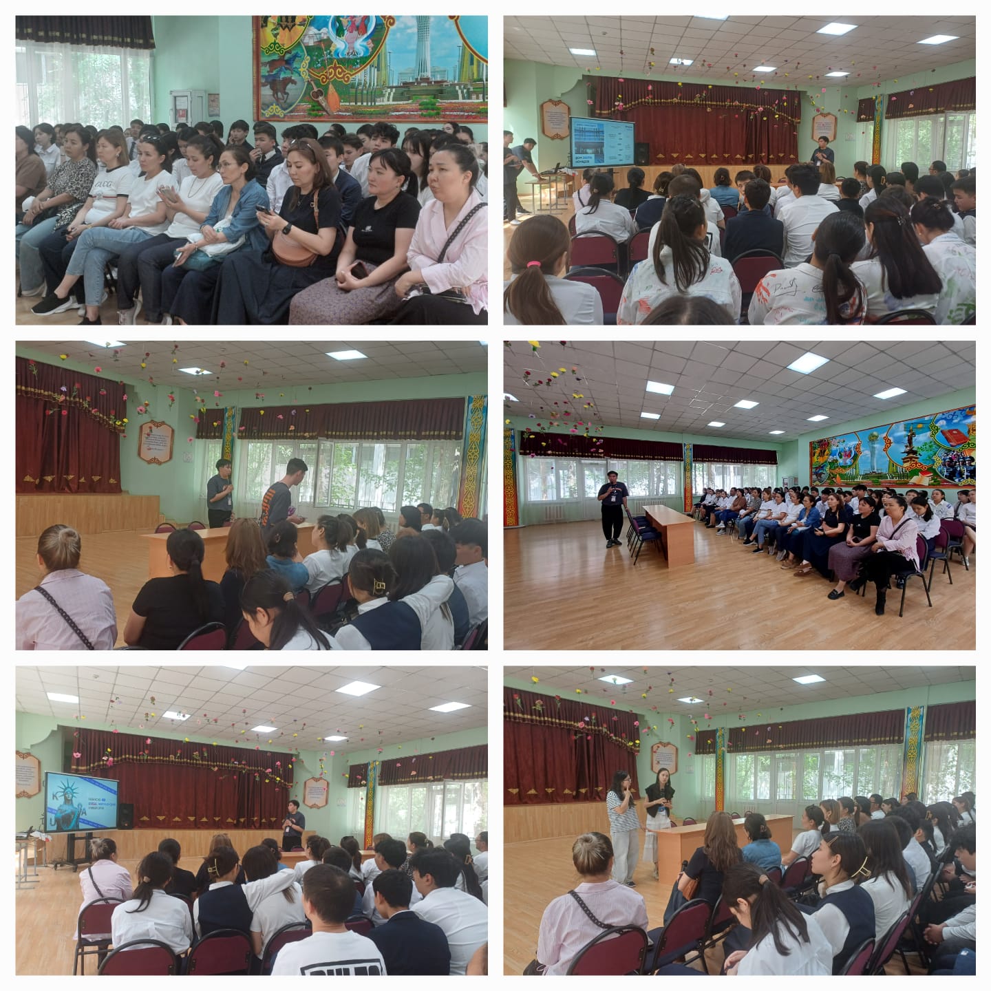 Ғ.Мүсірепов атындағы №86 мектеп – гимназиясының 9 сынып оқушылары мен ата-аналарына кәсіптік бағдар беру үшін Қазақ – Америка Университетінің студенттері мен кураторлары келіп өздерінің мамандықтарымен таныстырып, колледж бен университетіне шақыр