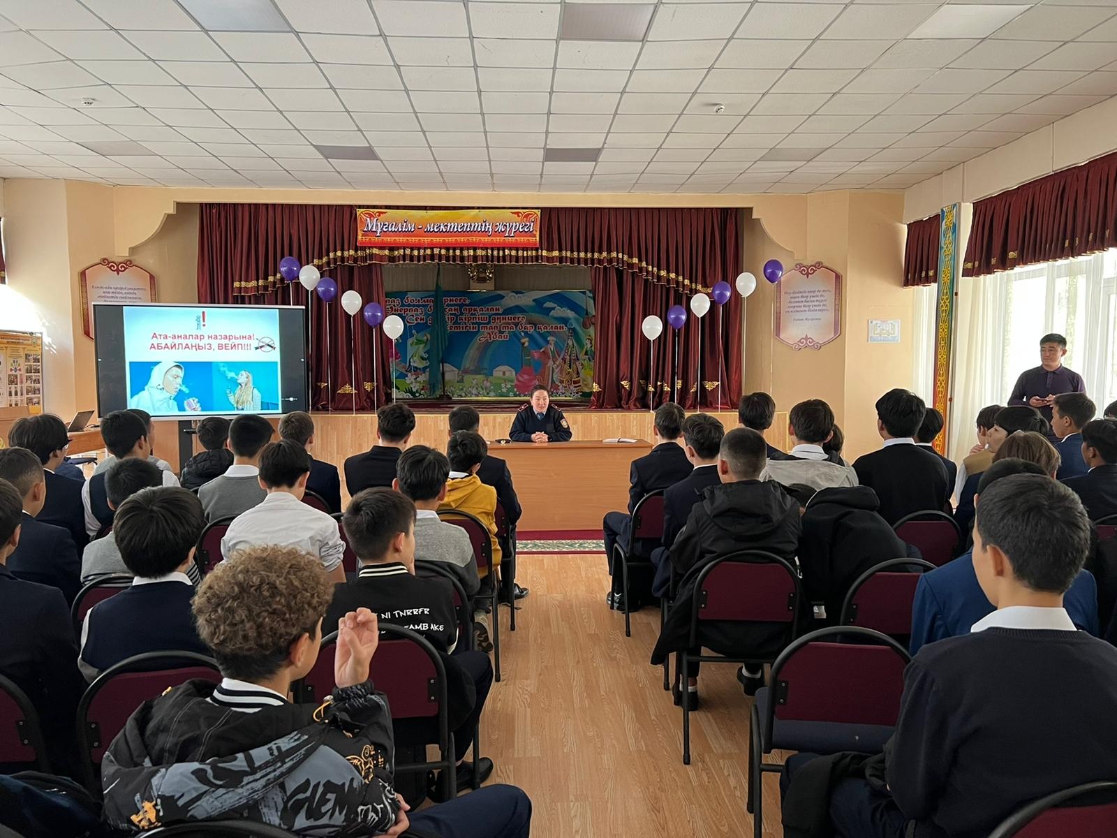 Ғ.Мүсірепов атындағы 86 мектеп-гимназиясында “Зиянды заттарды пайдаланудың алдын алу” тақырыбында 8-9 сынып ұлдары арасында мектеп инспекторы А. Кабыкенова мен ДТІЖ орынбасарлары С. Жакыпбекова, Ж.Жұмамұрат және “Құқық және тәртіп” фракциясының ұйымдастыруымен түсіндірме жұмыстары жүргізілді.