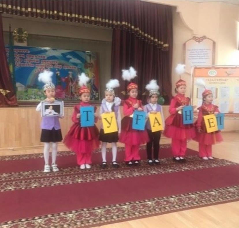 2 «В» сынып ( әні: Н.Тілендиев, сөзі: Т.Молдағалиев ) «Туған ел» әнді жарнамалап,би билеп,хормен ән айтып,тамаша орындап шықты.