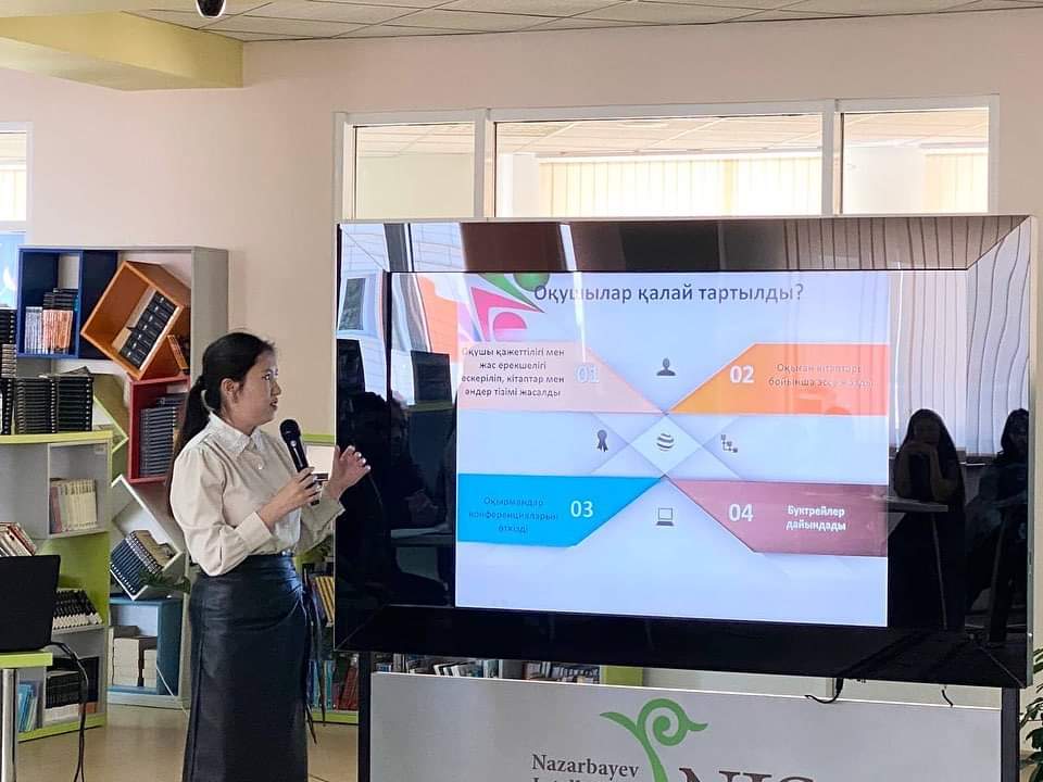 7 маусым күні НЗМ-нің басшысы Күләш Ноғатайқызы Шамшидинова Алматы қаласындағы жас педагогтармен еркін-әңгіме кездесу жасады.Кездесу барысында жаңартылған білім беру мазмұнында кездесетін қиындықтар мен кедергілер жайлы сұхбат болды. Кездесуге мектебіміздің дарынды, жас ұстазы қазақ тілі мен әдебиеті пәні мұғалімі Сатымбаева Жанар Манатқызы қатысып, өз тәжірибесімен бөлісіп, ой пікірлерін ортаға салып, пікіралмасты.