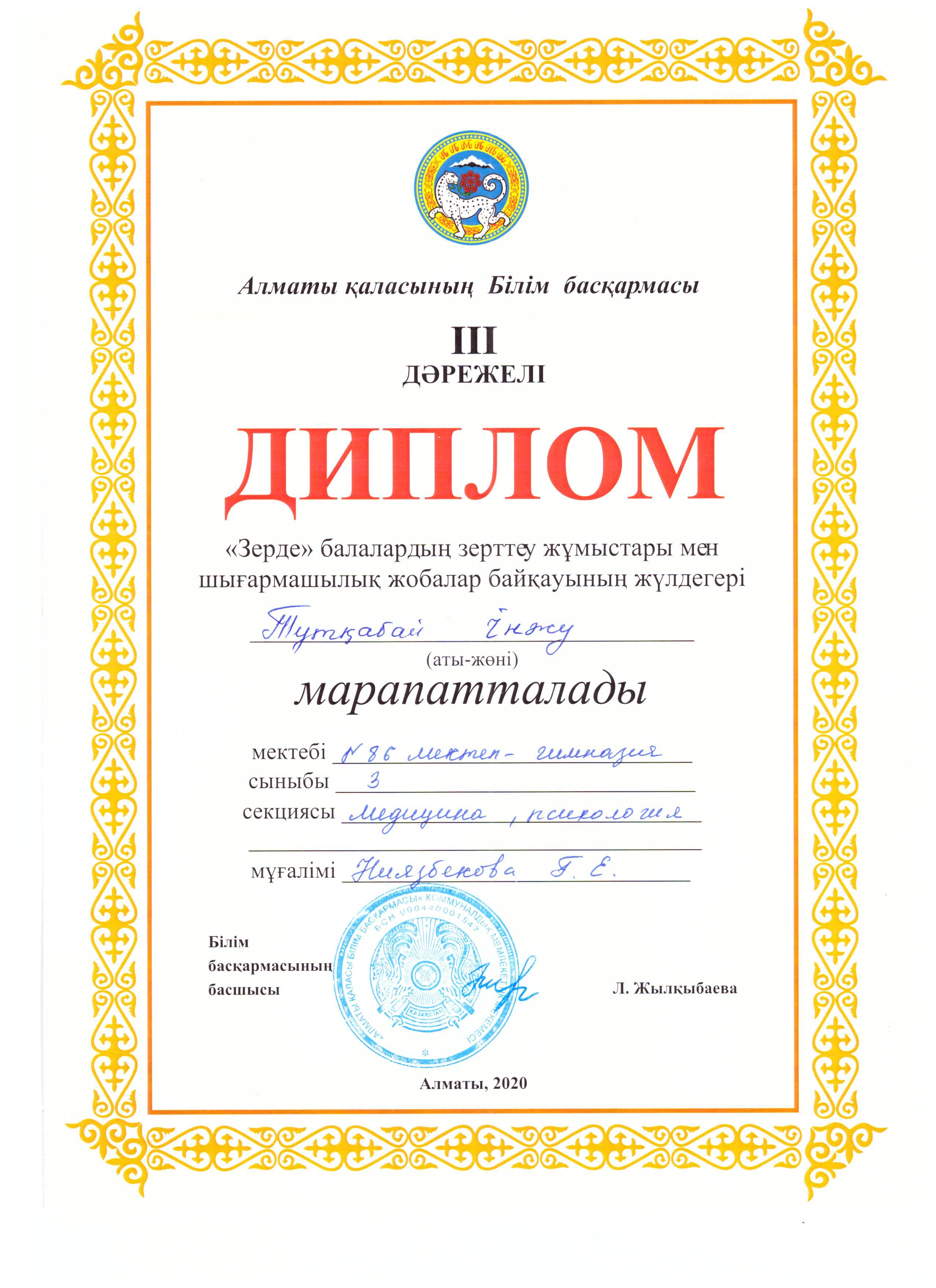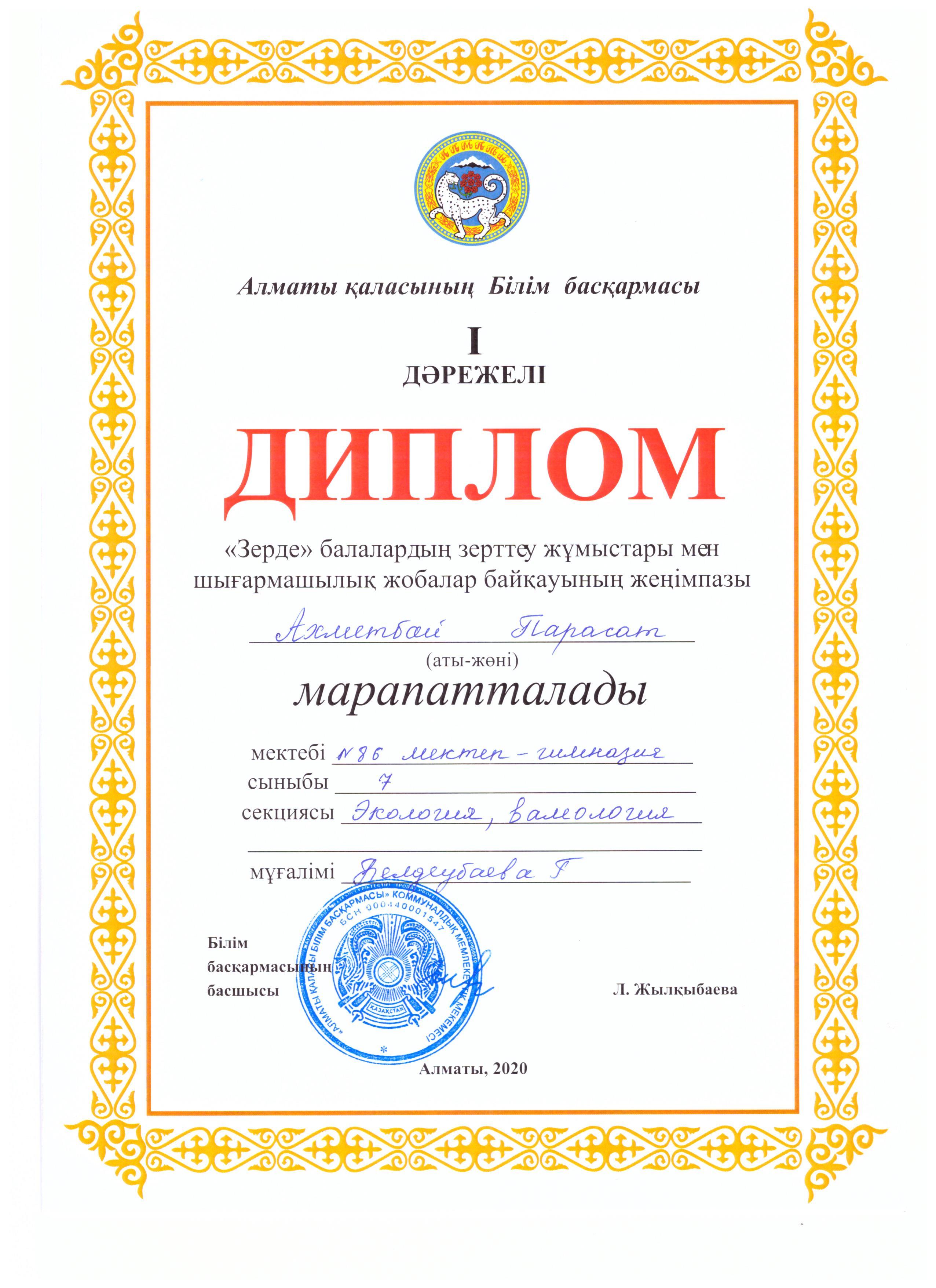 22 декабрь 2020 0 1 2 3 4 5 "Алматы Дарыны"дарынды балалар мен талантты жастарды анықтау және қолдау жөніндегі орталығы" ұйымдастырған "Зерде" қалалық ғылыми жобалар жүлдегерлері Ғылыми жоба жетекшілері биология пәні мұғалімі Г.Т.Белдеубаева және Г.Е.Ниязбекова