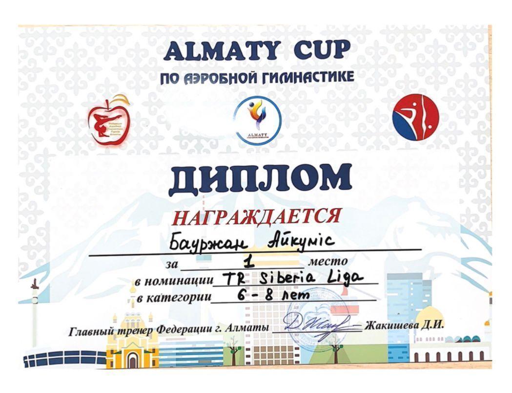 Алматы қаласында аэробикалық гимнастикадан 6-8 жас аралығындағы балалар арасындағы жарыс жүлдегері