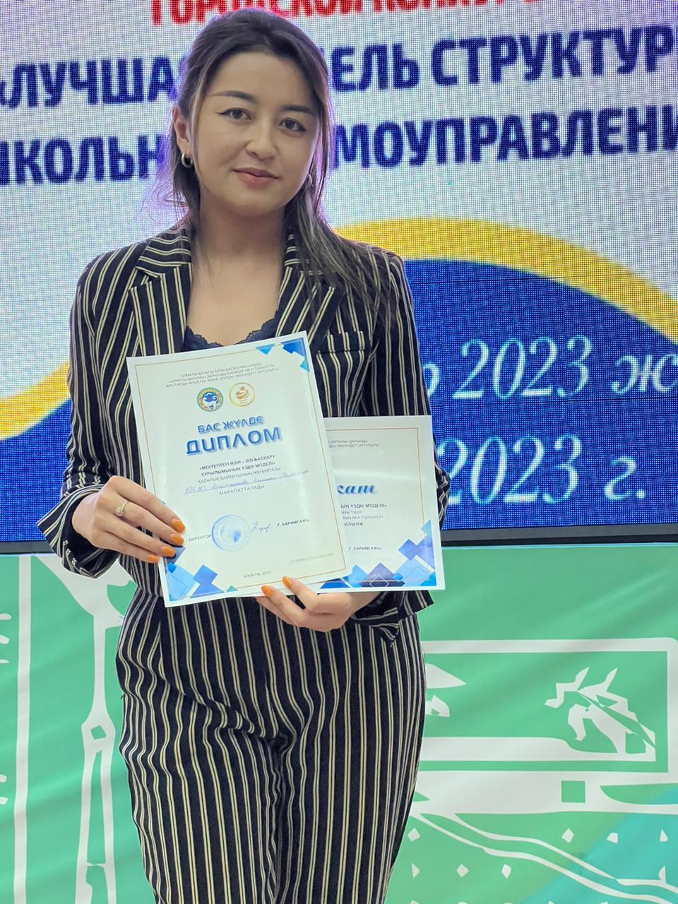 «Мектептегі өзін - өзі басқару құрылымының үздік моделі» қалалық байқауының "Бас жүлде" иегері.