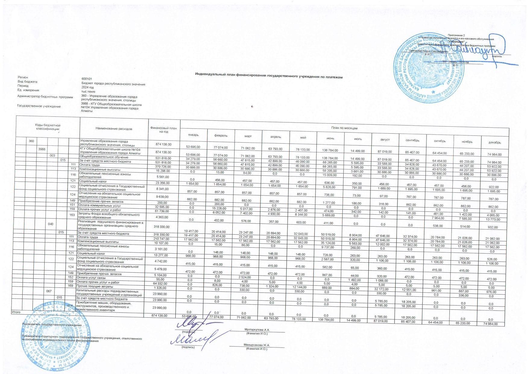 Қаржыландыру жоспары 2024 жыл