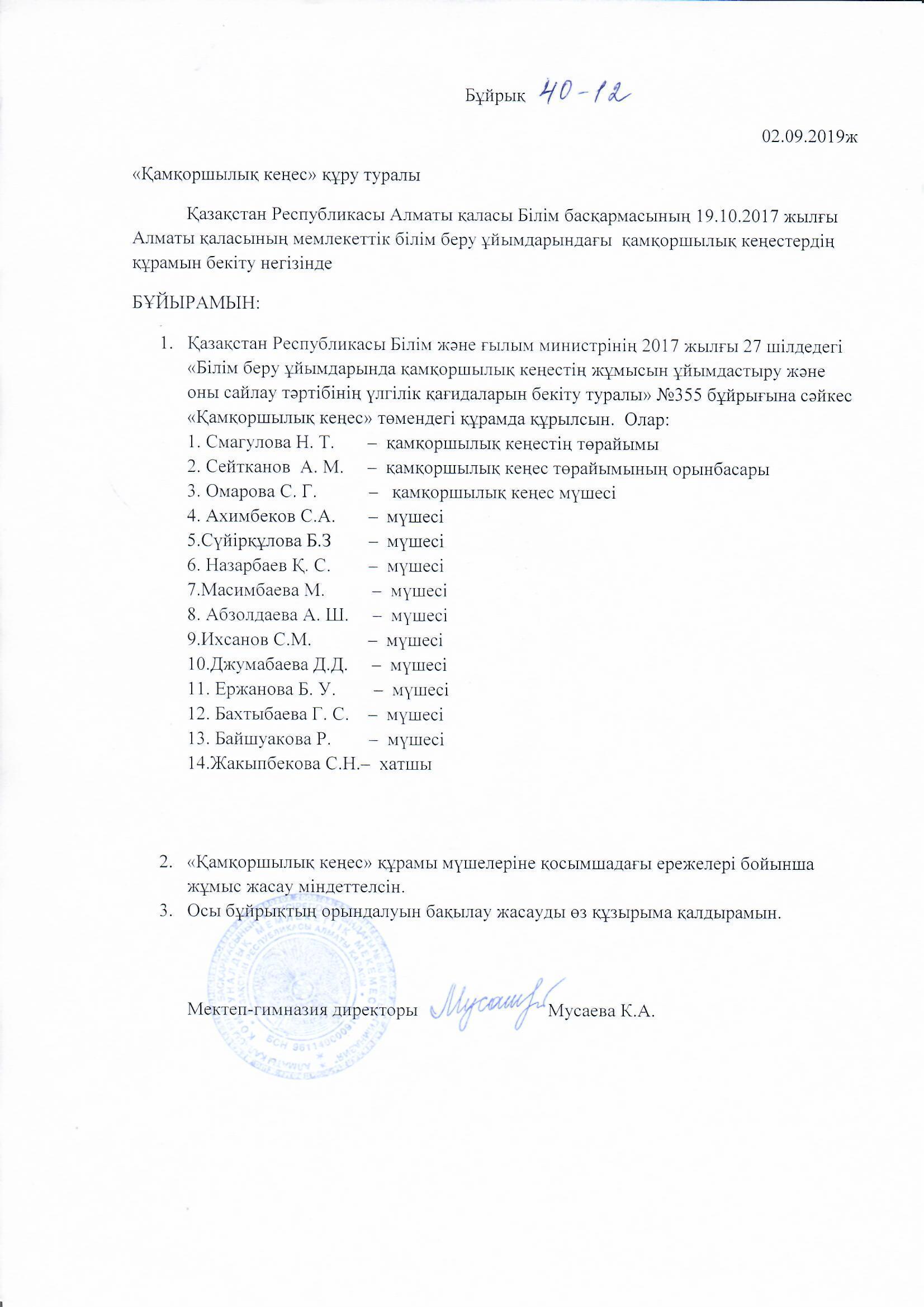 » Қамқоршылық кеңес 2019-2020 оқу жылы