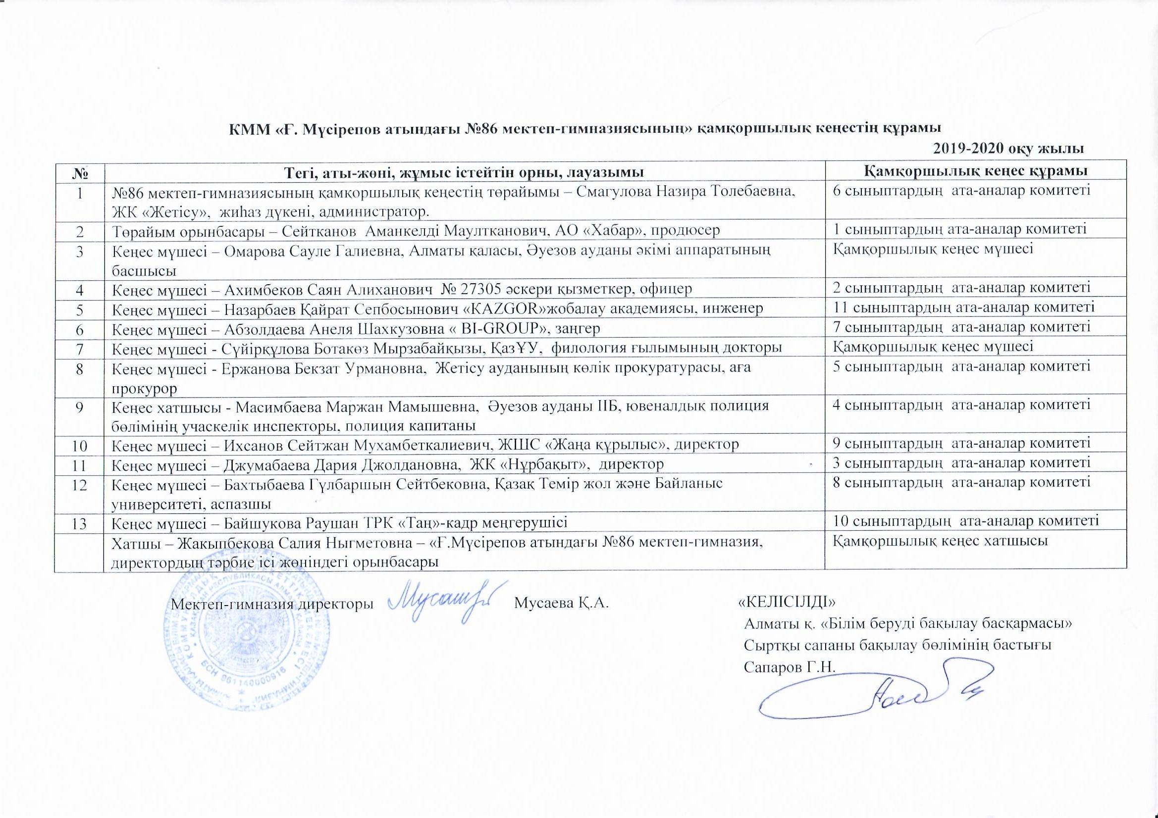 Қамқоршылық кеңес 2019-2020 оқу жылы