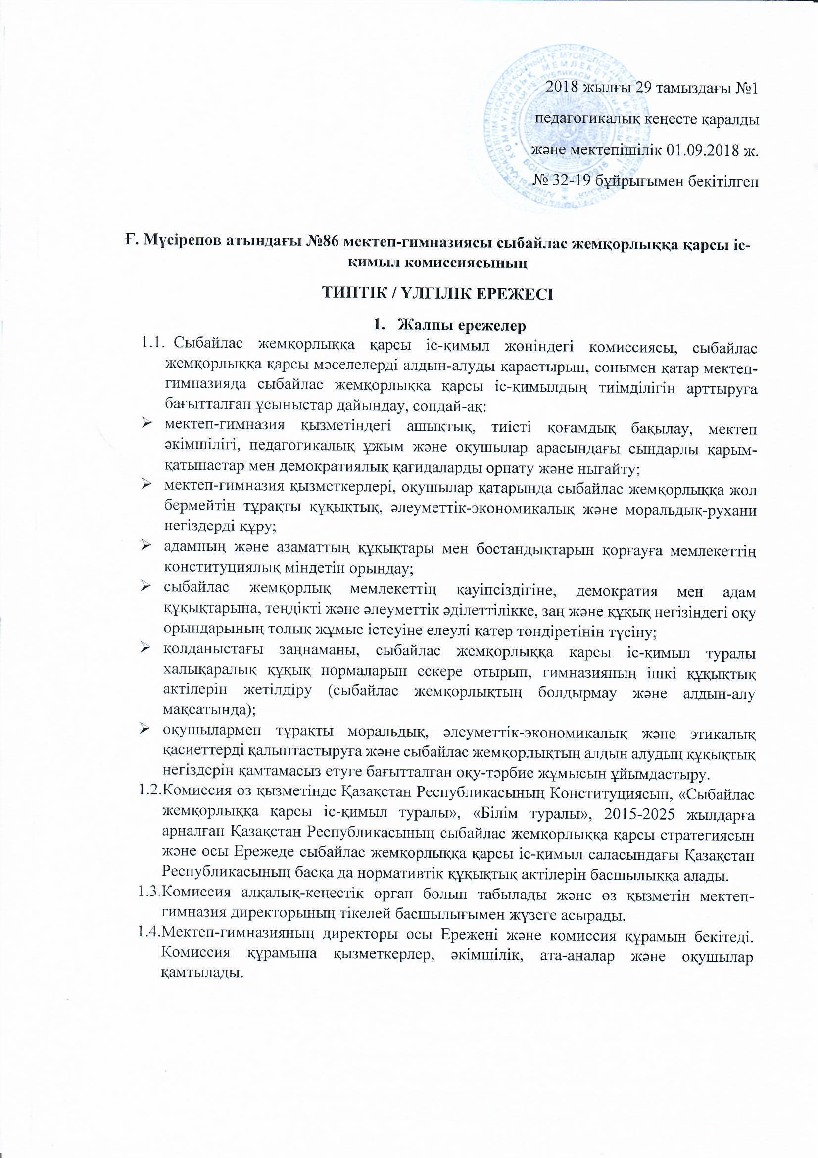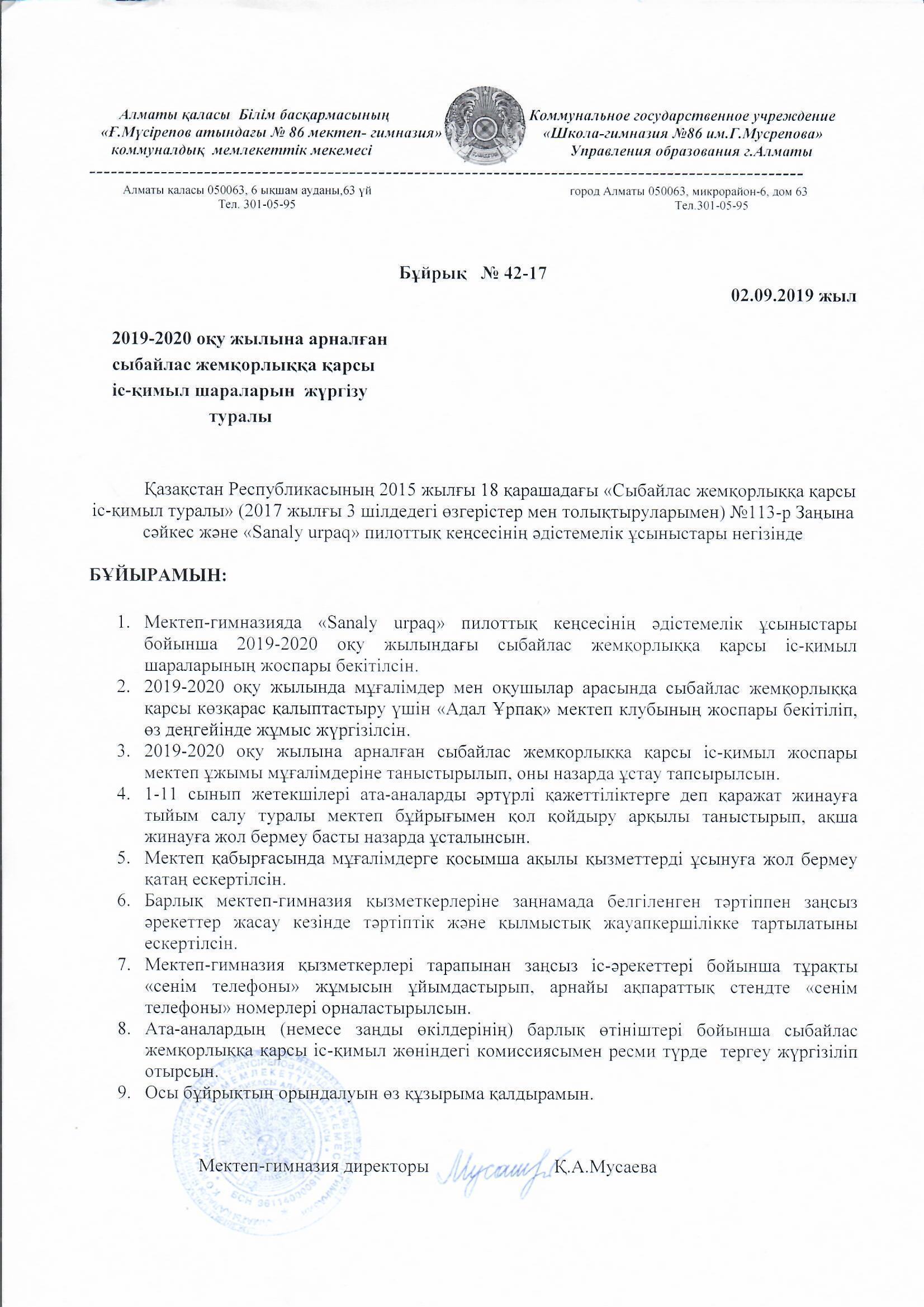 2018-2019 оқу жылына арналған сыбайлас жемқорлыққа қарсы іс-қимыл шараларын жүргізу бұйрығы_