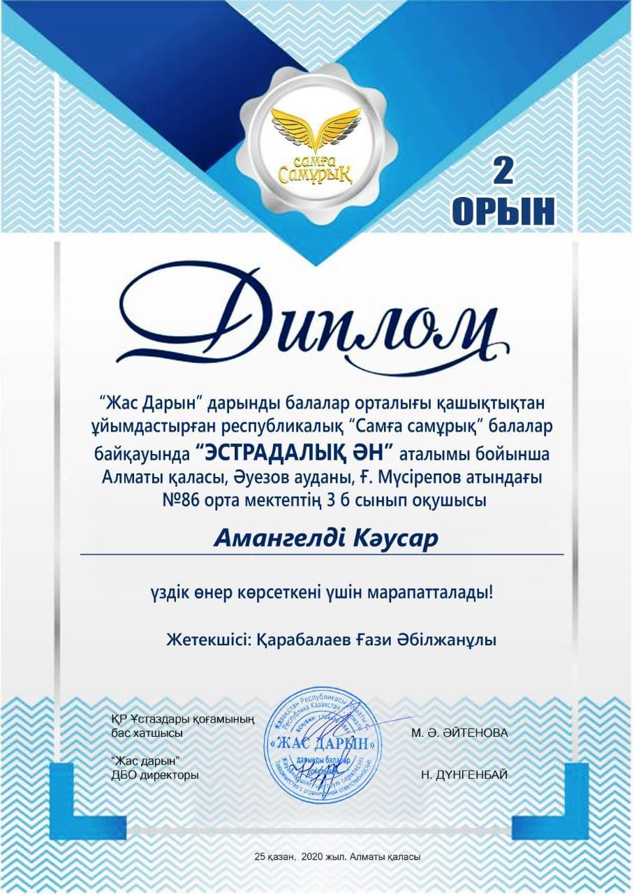 24 октябрь 2020 0 1 2 3 4 5 "Жас дарын" дарынды балалар орталығы қашықтықтан ұйымдастырған Республикалық "Самға самұрық" балалар байқауының жүлдегерлері