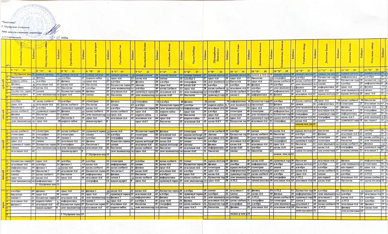 2024-2025 оқу жылындағы I ауысым сабақ кестесі (8-11 сынып) I тоқсан