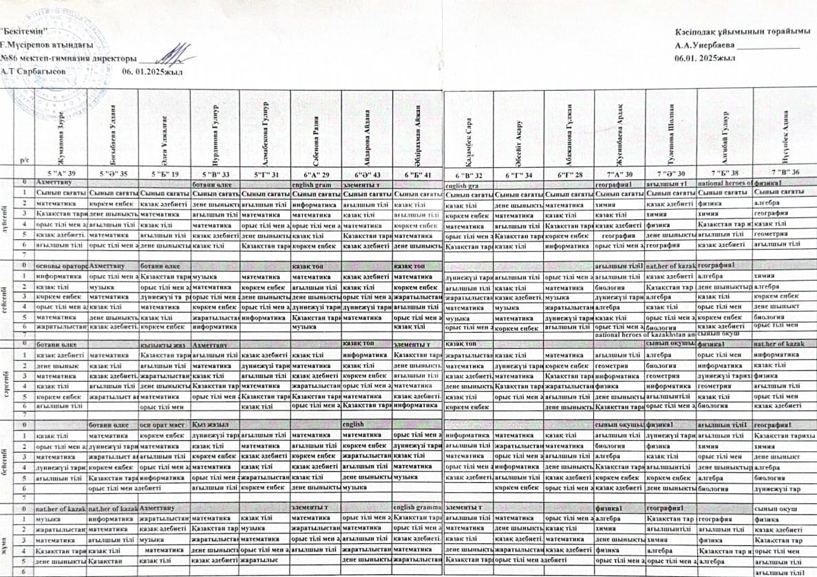 2023-2024 оқу жылындағы ІІ ауысым сабақ кестесі (5-7)