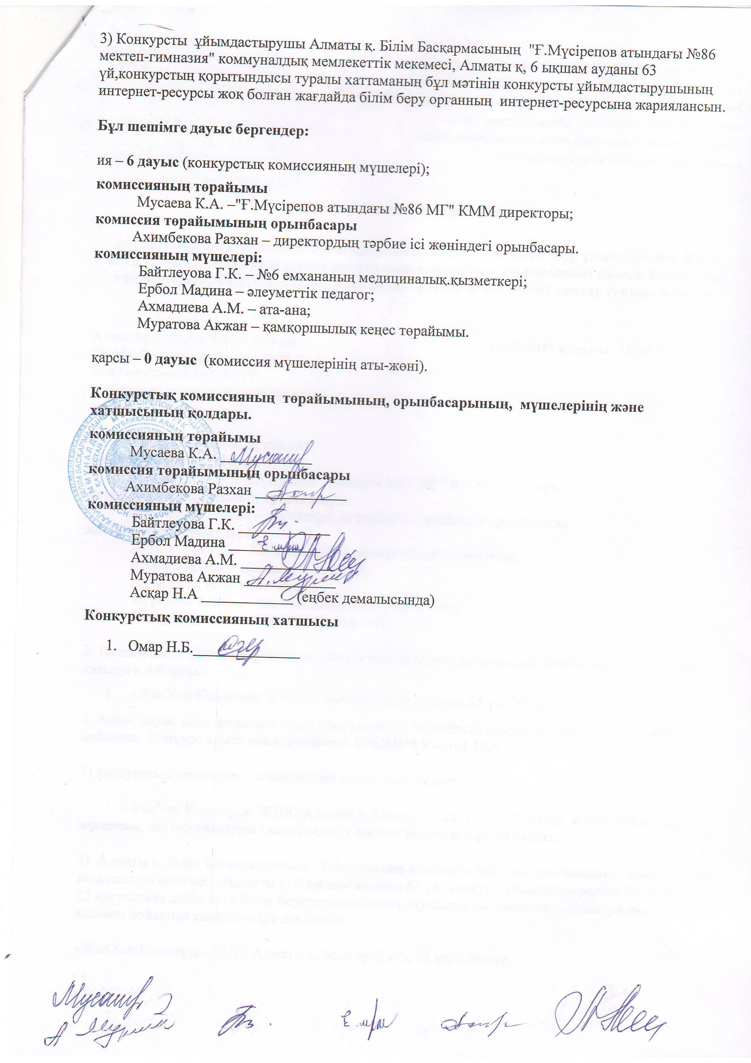 Конкурс қорытындысы туралы хаттама