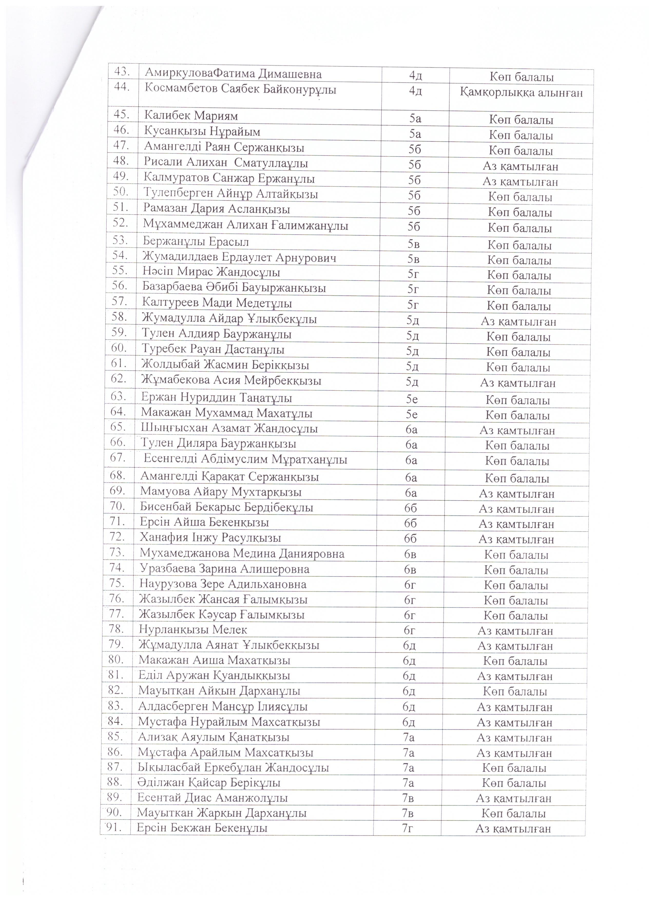 03 сентябрь 2021 0 1 2 3 4 5 2021-2022 оқу жылы жалпыға міндетті оқу қорынан тегін бір мезгіл ыстық тамақ ішетін оқушылар тізімі