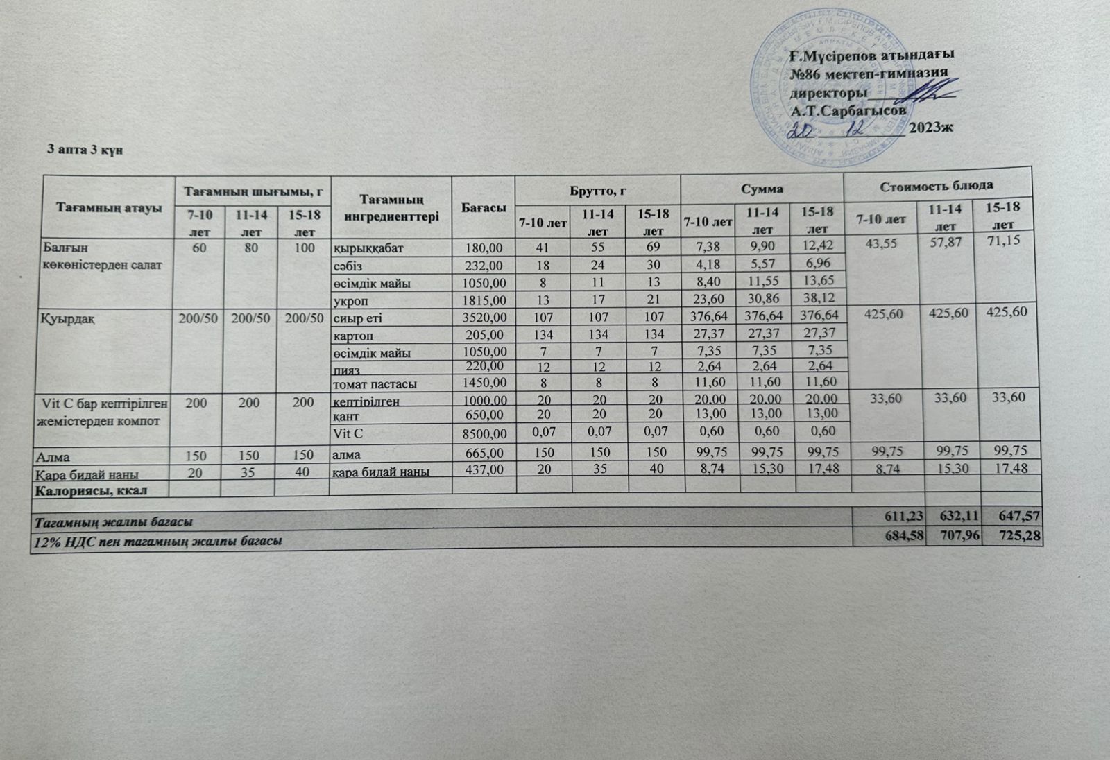 1 апта 3 күн