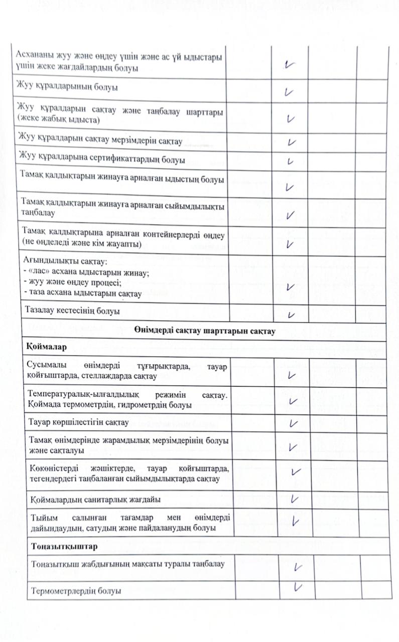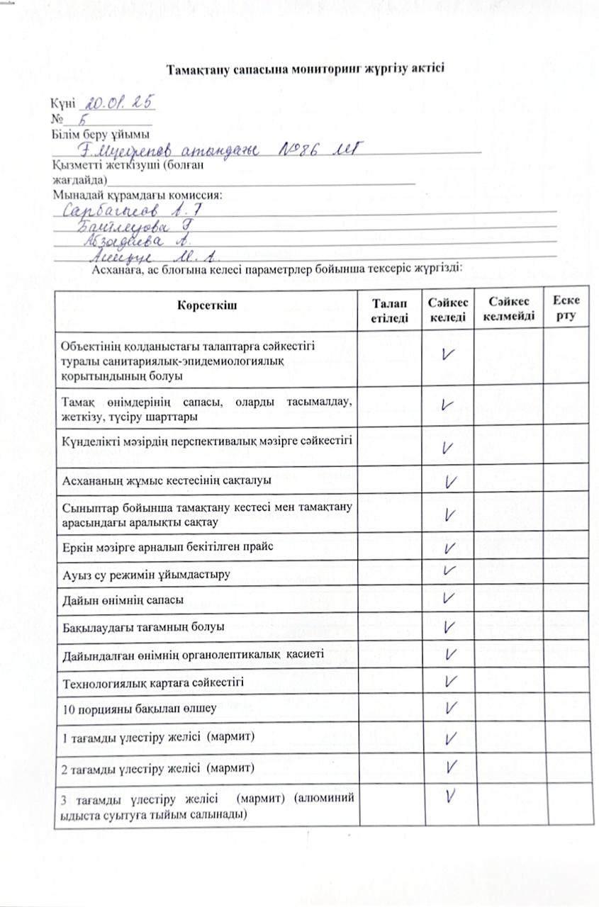 » Тамақтану сапасына мониторинг жүргізу актісі №5